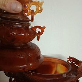 vaso cinese in agata rossa,zero rotture,naturale il colore! 32 cm altezza,leggere sfumature arancio tipiche della pietra,non spedisco,ritiro a milano