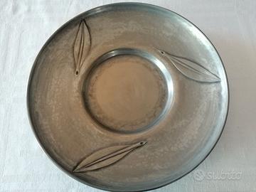 Bellissimo vaso in peltro firmato da "Peltro Bellotti": base larga 9 cm ,diametro superiore cm 8, altezza 28 cm abbinato con piatto in peltro firmato "Peltro Bellotti" diametro cm.22 Ritiro a mano o previo accordo