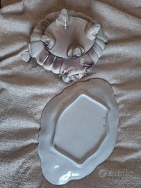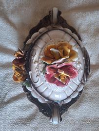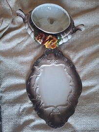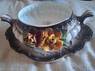 Vaso con sottovaso da frutta centrotavola in ceramica porcellana stile Capodimonte