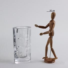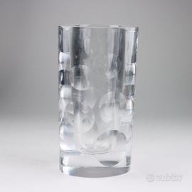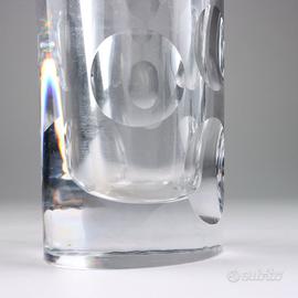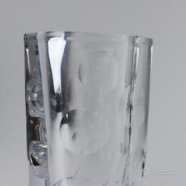 Vaso a base ovale in cristallo con decoro a cerchi concavi. Marchio della