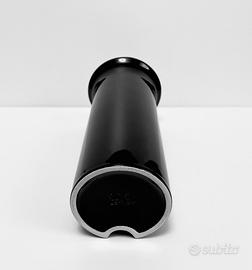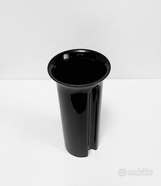 Vaso dal design minimalista molto moderno ed attuale, realizzato in ceramica smaltata nera, negli anni 50-70, da Ceramiche Pozzi.