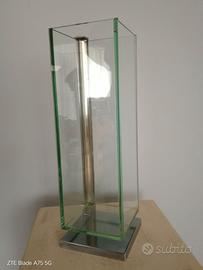 Un interessante vaso di design in acciaio e vetro industriale, realizzato in Italia negli anni ‘90.