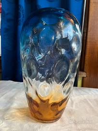 Splendido vaso blu e ambra degli anni '70 in vetro di Murano Vaso alt 28 x 16