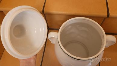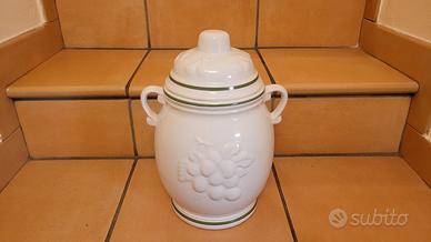 Vendo originale contenitore per la preparazione di Rumtopf in perfette condizioni. Grande vaso con incisione e decorazioni, per conservare la frutta al rum, con due manici laterali. Vendo per inutilizzo