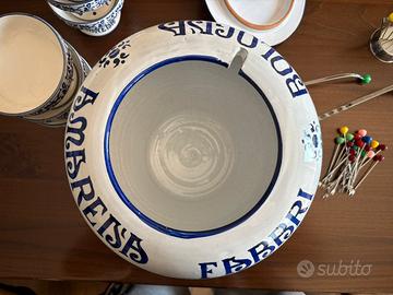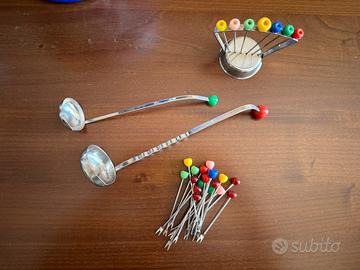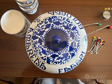 Vendo set vintage da collezzione Fabbri Amarena Bologna anni 70. Grande vaso con due mestoli, sei coppette/alzatine, forchettine e spiedini. Splendide condizioni senza rotture. Vista la delicatezza solo consegna a mano.