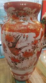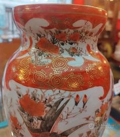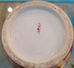 Raro e antico vaso giapponese kutani decorato a mano con motivi floreali e particolari riflessi dorati. Ben conservato nel tempo. Marchio originale sul fondo visibile in foto.