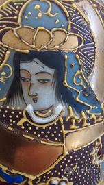 Vaso giapponese fine 800 tecnica satsuma porcellana molto fine trasparente decorata con resina in rilievo doratura in perfette condizioni senza usure volti dei personaggi finemente dipinti