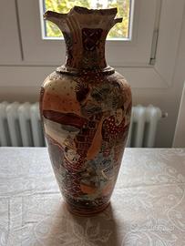 Splendido vaso antico ornamentale in stile Satsuma, risalente presumibilmente al periodo Meiji (fine '800/inizio '900) o successivo, caratterizzato da ricche decorazioni dipinte a mano e dettagli in oro.