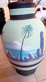 vaso grande in terracotta con disegni. misure altezza 37cm, circoferenza 68 cm, aperture in alto 35cm, circoferenza in basso 40 cm.