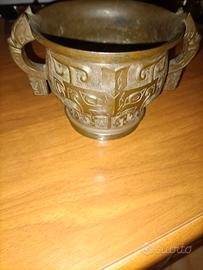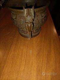 Vendo vaso gui in bronzo stile arcaico dinastia Qing con decorazioni draghi e serpenti in basso vaso all'incirca ottocentesco. Ritiro a mano