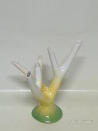 VINTAGE VASO GUIDO ANDLOVITZ CERAMICA LAVENO RAMO Bianco Giallo anni 60 ITALIA condizioni ottime no crepe. o scheggiatura uusato