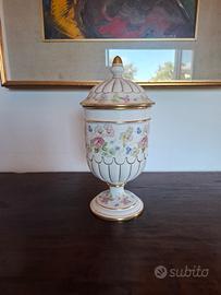 Motivi floreali e profili dorati. Ottimo come soprammobile elegante.