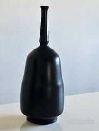Vaso in ceramica con rilievi a smalto firma al retro modernariato anni 70 Altezza 25 cm