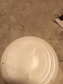 iconico vaso in ceramica di Amarena Fabbri,marchio del 1905,vaso bianco e blu con design ispirato alla porcellana cinese realizzato dal ceramista Riccardo Gatti con copertura tappo rosso originale alta cm 14