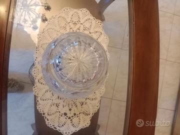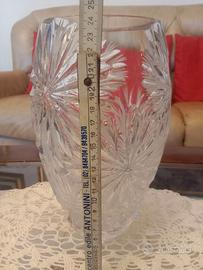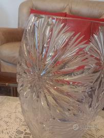 Vaso in cristallo molato e intagliato, anni 70. Usato ma in buonissimo stato senza scheggiature. L'altezza del vaso è di cm. 24,5 e il diametro e di cm.11,5, un buon diametro per adagiare un mazzo di fiori bello corposo. Potrete rilevare dalle fotografie la buona consistenza del vaso non c'è pericolo che anche con un mazzo di fiori il vaso possa cadere. Visionabile e ritirabile in Milano zona Sud o spedizione a mezzo subito.