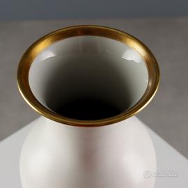 Vaso in porcellana bianca opaca con bordo e decoro a tema Egitto in oro