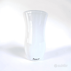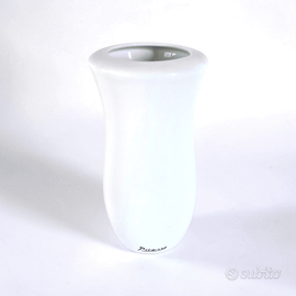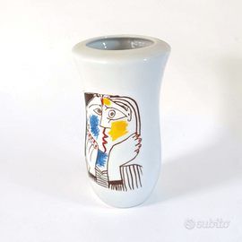 Questo vaso appartiene alla collezione d'arte prodotta dall'italiana Tognana su licenza della Succession Picasso e distribuita tramite Museum Masters International (MMI) nei primi anni 2000. Soggetto: L'opera riprodotta è effettivamente "Tête Appuyée sur les Mains" (Testa appoggiata sulle mani) del 1962, ma in una versione policroma. A differenza della variante solo in bianco e nero, questa utilizza colori primari (blu, giallo e rosso) per riempire le campiture del volto e delle unghie, riflettendo fedelmente i pastelli colorati dell'originale picassiano. Stile: Il decoro avvolge parzialmente il corpo del vaso, con il tipico tratto a "schizzo" che caratterizza le grafiche di Picasso degli anni '60. Caratteristiche: Porcellana bianca lucida con una svasatura pronunciata verso l'alto, ideale per contenere bouquet di fiori freschi.