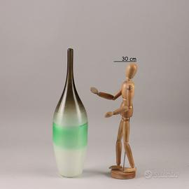 Vaso in vetro a collo stretto nei toni del verde e del fum.