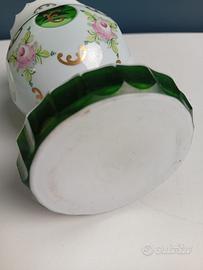 Calice da colleczione in vetro verde incamiciato bianco, molato e decorato a