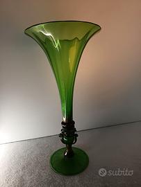 Bellissimo vaso in vetro di Murano color verde Altezza 47 Diametro massimo 25 cm