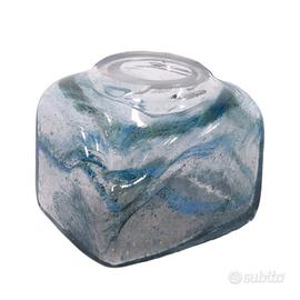 Vaso a forma irregolare in vetro trasparente con inclusioni nei toni del blu e