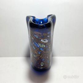 Vaso in vetro di Murano Blu e Avventurina con Murrine a fazzoletto - XX Secolo