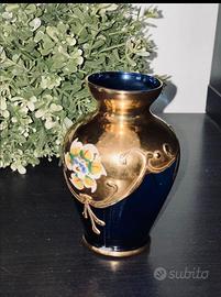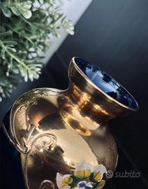 Vaso in ottime condizioni, vintage, proveniente da un’appartamento di famiglia molto nota al centro di Milano, in vetro blu di Murano veneziano, decorato in lamina di oro 24 carati.