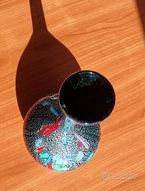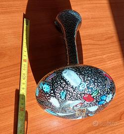 Vendo vaso in vetro di Murano anni 60/70 colore nero in foglia d'argento e murrine. Non presenta alcun difetto e completo di tutte le etichette. Le misure sono 12 x 22 cm circa. Visionabile in zona Torino Posso spedire.