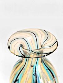 Un vasetto in vetro di Murano realizzato a mano dal maestro Luigi Camozzo, risalente alla metà degli anni 80, dalla forma bombata e bocca piatta.