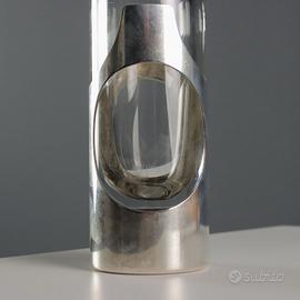 Vaso tubolare in vetro con inserti in argento. Marchio della manifattura e firma
