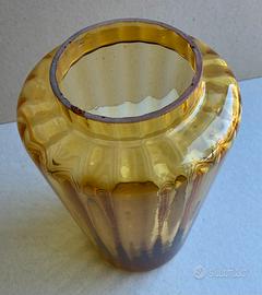 Vaso in vetro soffiato di colore ambra, anni '40/'50 Misure: altezza cm. 30 c.a. Diametro massimo cm. 20 c.a. Diametro base cm. 12 c.a. Diametro bocca cm. 10,5 c.a. Peso Kg. 1 Condizioni ottime (piccolissimo sbecco sul bordo visibile in foto).