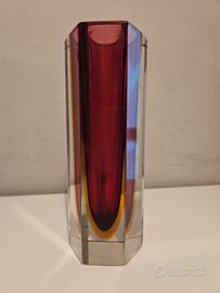 vaso in vetro di Murano realizzato con la tecnica del "sommerso", attribuito al designer Flavio Poli per Seguso Vetri d'Arte negli anni '60 o '70.