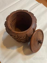 Vendo vaso porta tabacco in legno lavorato 110mm diametro.