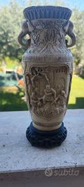 Bellissimo vaso di stile orientale realizzato in avoriolina dettagli scolpiti a mano.