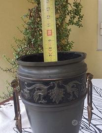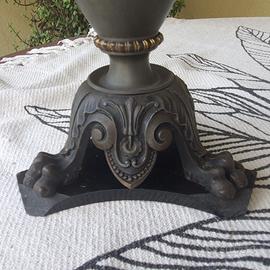 Vaso in metallo bronzato con inserti dorati stile impero, piedi a forma di artigli su base in bachilite (?). Vari ornamenti (uccelli e scudi) adornano la parte alta. La profondità interna è di circa 7 centimetri.