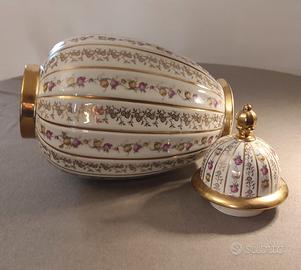 Prezioso vaso dalla forma a potiche di manifattura tedesca , Bavaria Elfenbein Porzellan , colore avorio con corpo ond