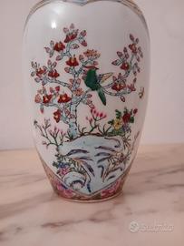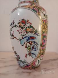 Bellissimo vaso Porcellana Cinese,dipinto e decorato a mano,con rifiniture color oro,h.cm.25,egregiamente conservato.