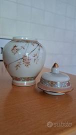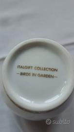 raffinato e delicato vaso porcellana, urna con coperchio, Birds in Garden, Italgift anni 70; altezza 12 cm; senza difetti