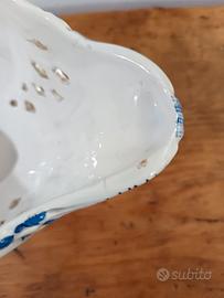 Vaso porta frutta vintage in ceramica bianca con decori blu, qualche piccola mancanza come in foto. Marchiato Fiorita Nove (Bassano) anni 60