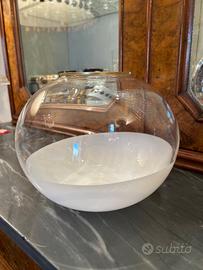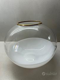 Bellissimo vaso rotondo 1982 VeArt -Murano Venezia. Trasparente e metà in vetro lattimo. Bordo in oro zecchino. Perfetto, nessuna sbeccatura o altro. Diametro cm.23- Altezza Cm. 18.