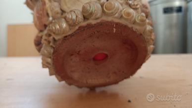 vaso terracotta adornato con tutte conchiglie vere vintage anni 60