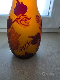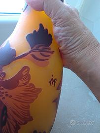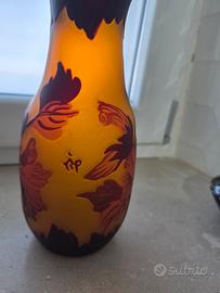 Bellissimo vaso Art Nouveau da collezione, firmato Tip Gallé che indica un tipo di oggetti (spesso lampade e vasi) realizzati utilizzando la tecnica del vetro multistrato tipica di Émile Gallé, ma prodotti da altre manifatture e con tecniche simili.