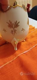 Elegante vaso a forma di uovo, finemente decorato con un bouquet di fiori colorati e dettagli dorati.