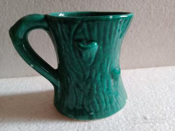 Piccolo Vaso Vintage a Brocca di colore Verde con effetto a tronco d'albero È risalente agli anni 70 Altezza: 10,3 cm