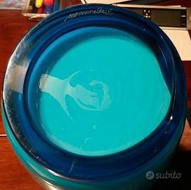 Vaso VENINI in vetro di Murano opalino, colore turchese con interno bianco, firmato anno 2002, h36cm come da foto.