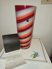 Vaso Bianco Arancione e Rosso Troncocono - Carlo Moretti - Vetro di Murano Originale OMG