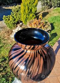 Vaso Murano, Vintage. Prezioso Vetro Nero Con Intrusione di Oro e Rame durante la lavorazione Artigiana ( Tecnica chiamata Avventurina) Attribuibile al Maestro Vetraio Vincenzo Nason. Altezza cm 26. Diametro cm 16. Circonferenza cm 51. Condizioni Eccellenti pari al nuovo. Nessuna crepa ne scheggiatura. Veramente stupendo, questa Tecnica di Lavorazione, conferisce Grande Luminosità e Contrasto.