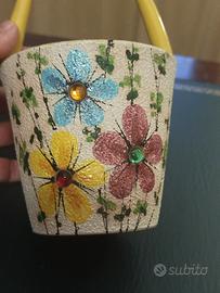 vaso in ceramica a forma di cesto con manico, un pezzo da collezione.