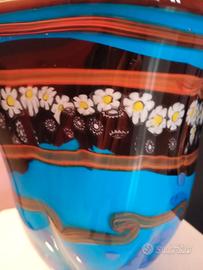 Bellissimo vaso di Murano colore azzurro/marrone/nero/bianco/giallo. Altezza 23 cm. Base 6 cm. Apertura a fazzoletto 22/17 cm. Pesante.