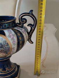 Splendida fioriera a cratere (o vaso biansato) in pregiata porcellana italiana firmata "Venetian Lagoon". Produzione di metà '900. In condizioni magnifiche, perfetto stile Sevres, con disegno bucolico. Per veri estimatori.
